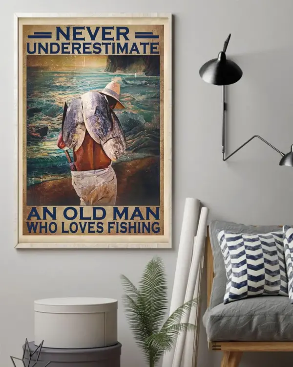 Old Man Fishing Poster - Rustic Wall Decor Housewarming Gift