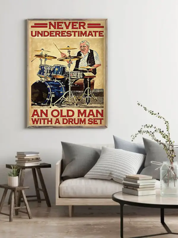 Never Underestimate An Old Man With A Drum Set Poster Music Poster Drums Wall Decor Music Studio Decor Drummer Gift Home Decor