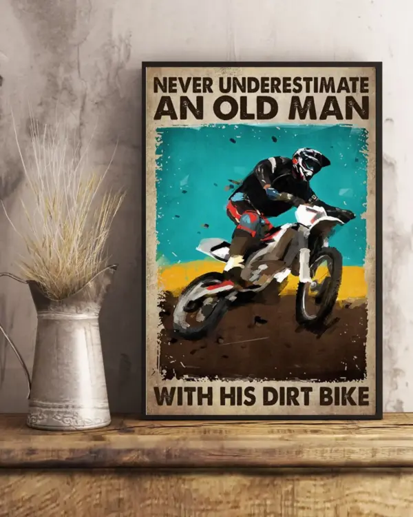 Never Underestimate An Old Man With His Dirt Bike Motorcycling Ideal Gift For Motorcycle Motorcycling Lovers Vertical Poster No Framed