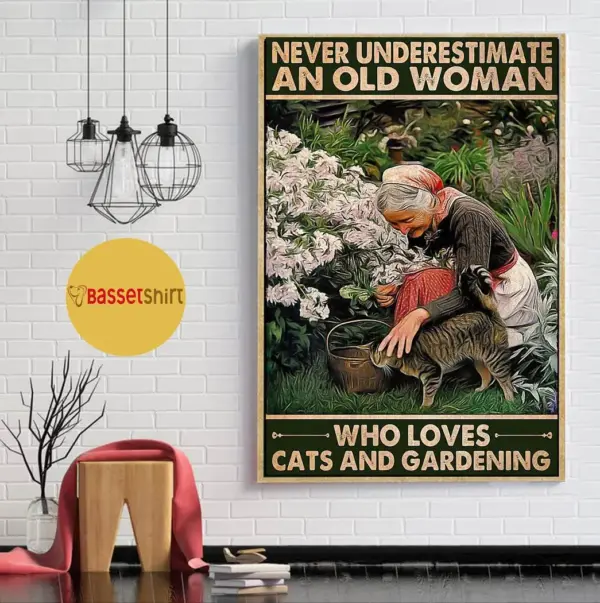 Old Woman Cat Lover Gardening Poster