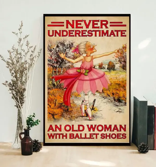 Never Underestimate An Old Woman With Ballet Shoes Poster Canvas