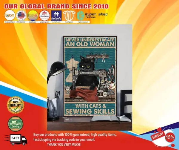 Never Underestimate An Old Woman With Cat And Sewing Skill Poster