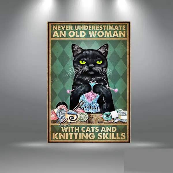 Never Underestimate Cat Knitting Poster