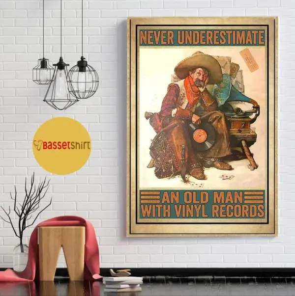 Never Underestimate Old Man With Vinyl Records Vertical Poster