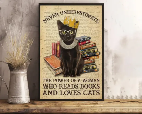 Woman Reader Cat Lover Poster - Inspirational Quote Gift