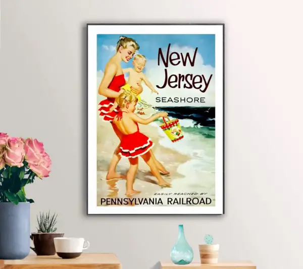 New Jersey Sea Shore Vintage Travel Poster Poster Paper Sticker Or Canvas Print Gift Idea Wall Art