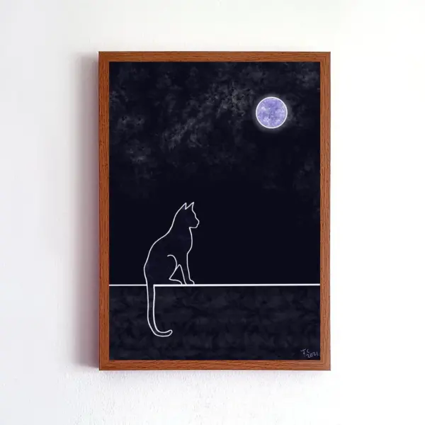 Night Sky Cat Wall Print Cat And Moon Wall Art Black Cat Print Night Sky Cat Print Gift For Cat Lover Cat Silhouette Poster Cat Poster