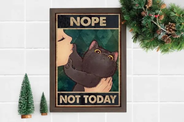Nope Not Today Cat Poster Black Cat Poster Cat Bathroom Decor Cat Wall Print Cats Signs Cat Wall Hangings Kitty Cat Poster