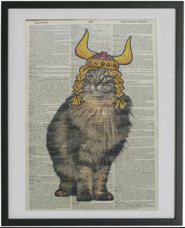 Norwegian Forest Cat Print No 233 Freya Goddess Viking Princess Funny Cat Cat Print Dictionary Art Prints Housewarming Gifts