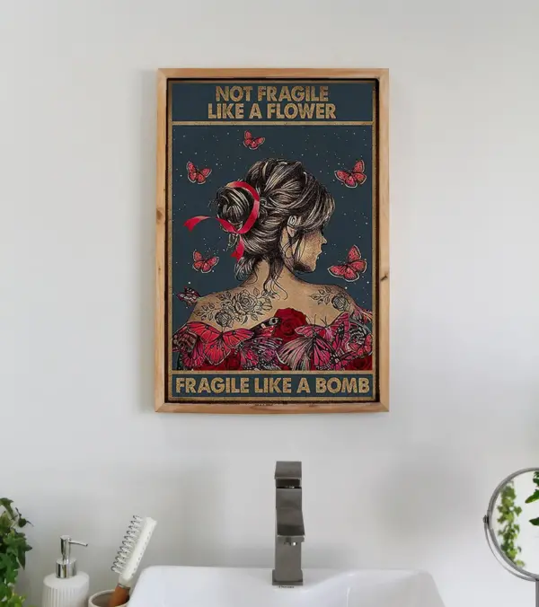Not Fragile Like A Flower Like A Bomb Poster Cancer Warrior Wall Art Cancer Fight Poster Cancer Home Decor New Idea For Home Decor