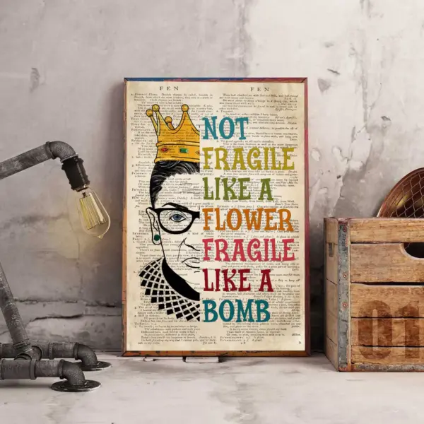 Notorious Rbg Poster Ruth Bader Ginsburg Poster Not Fragile Like A Flower Fragile Like A Bomb Poster Feminism Women S Rights Poster