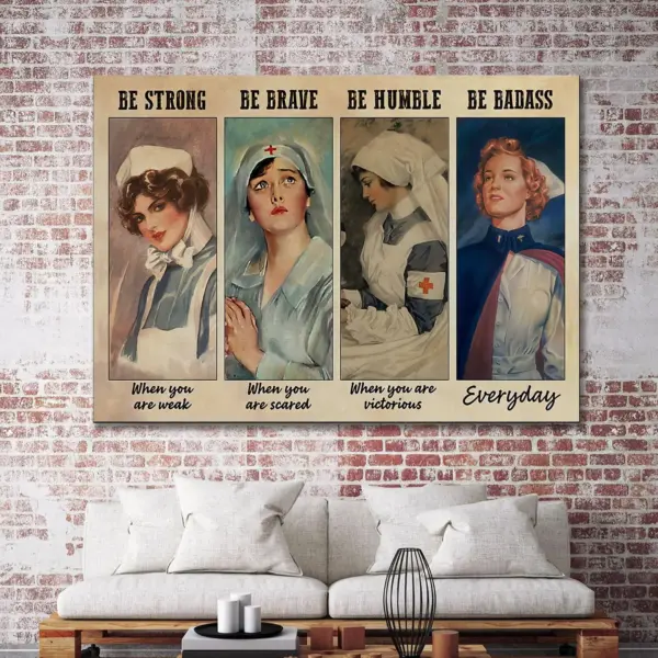 Nurse Art Print Be Strong Be Brave Be Humble Be Badass Everyday Poster Nurse Gift Vintage Nurses Art Proud Nurse Inspiration Poster