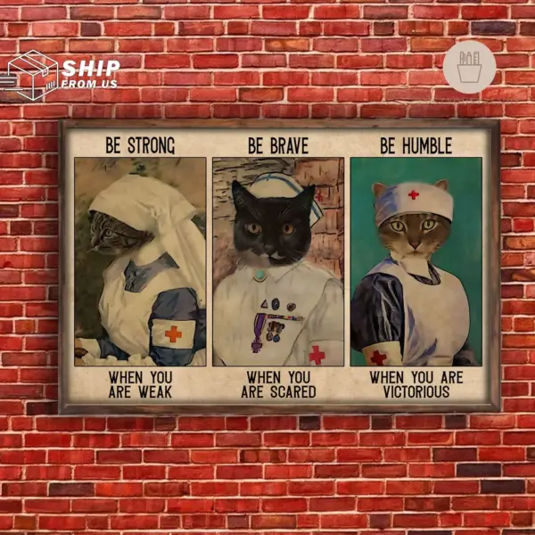 Nurse Nursing Cat Poster Cat Lovers Gifts Be Strong When You Are Weak Poster Home Living Decor Poster