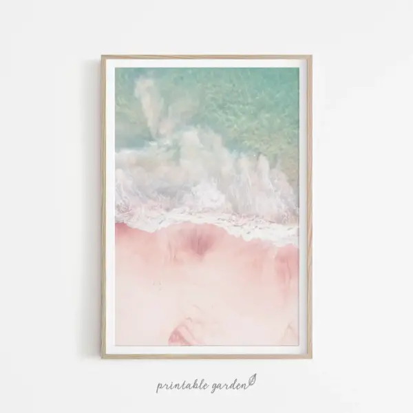 Ocean Beach Print Sea Lovers Gift Aerial Beach Printable Wall Art Ocean Waves Decor Pastel Pink And Blue Inspirational Nature Photo