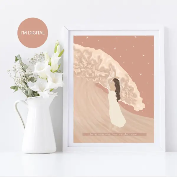 Ocean Illustration Art Celestial Goddess Print Spiritual Home Decor Sea Lovers Inspirational Quote Nature Wall Art