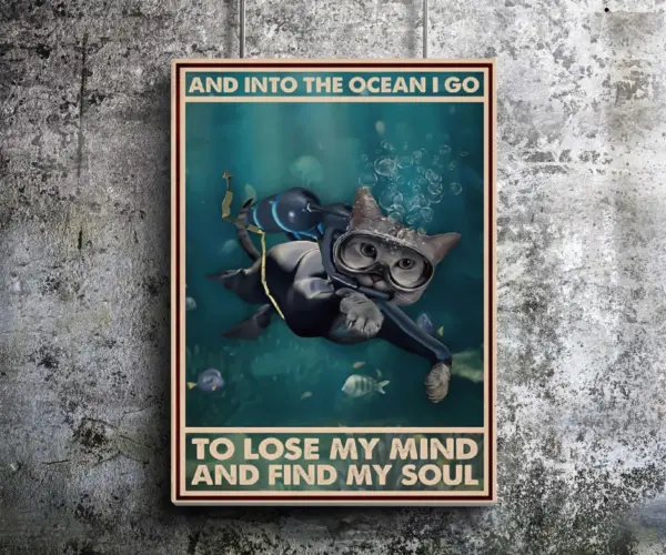 Ocean Poster Swimming Print Cat Lover Poster Unframed Paper Poster Scuba Diving Dive Cat Lover Poster Love Sea Print Wall Decor