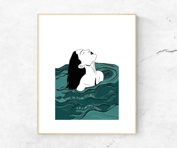 Ocean Print Ocean Quote Wave Print Girl In The Ocean Ocean Poster Ocean Home Decor Ocean Inspiration Mindfulness Print