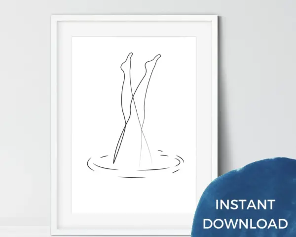 Woman Line Art Print - Ocean Swim Beach Poster