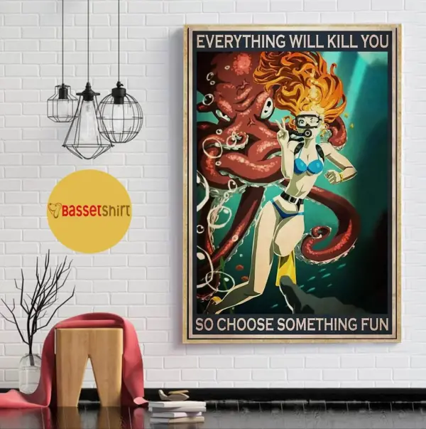 Octopus Diving Girl Everything Will Kill You So Choose Something Fun Poster