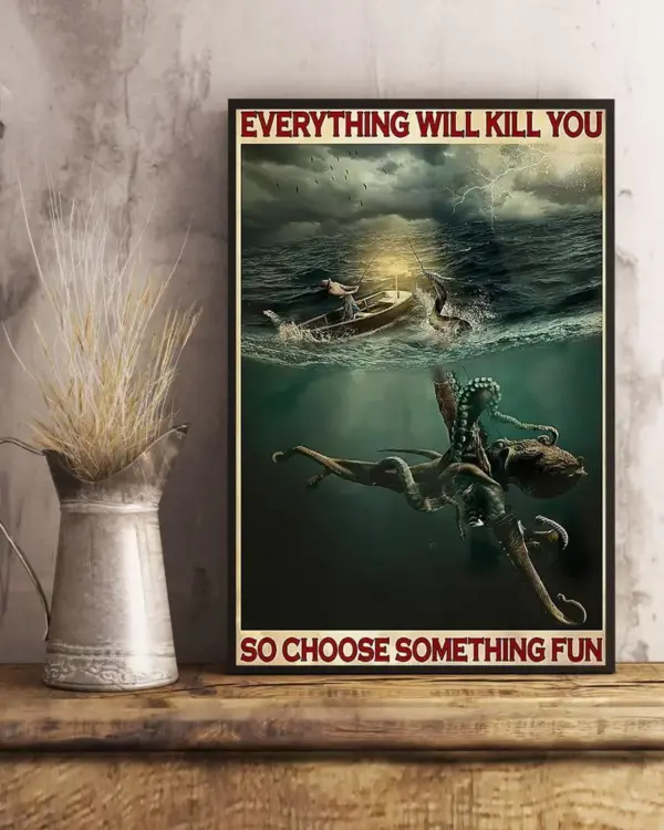 Octopus Everything Will Kill You So Choose Something Fun Poster Fishing Lover Ocean Poster Adventure Poster Octopus Poster Framed Matte Canvas