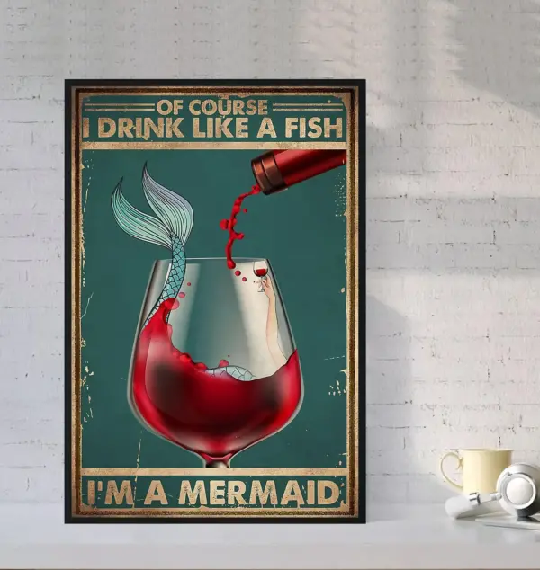 Of Course I Drink Like A Fish I M A Mermaid Vintage Mermaid Poster Ocean Lovers Poster Mermaid Lovers Wall Hanging 2412