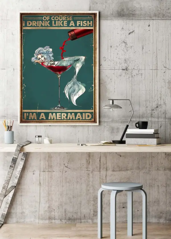 Of Course I Drink Like A Fish I M Mermaid Poster Wine Lover Poster Retro Girl And Wine Poster Mermaid And Wine Poster No Frame
