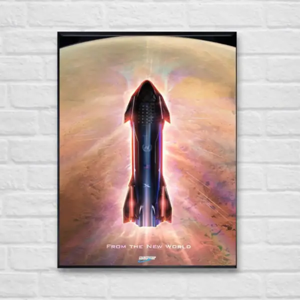 High-quality poster depicting a SpaceX Starship entering Earth's atmosphere. A stunning visual for space enthusiasts and collectors. Perfect gift!