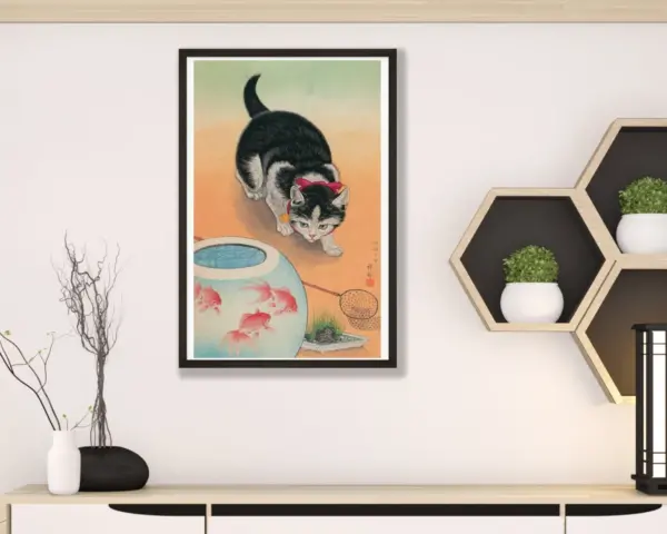 Ohara Koson Cat Goldfish Wall Decor Art Poster