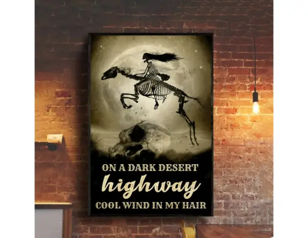 On A Dark Desert Highway Cool Wind In My Hair Horse Poster Wall Decor Home Decor Horse Art Print Horse Wall Decor Skull Poster