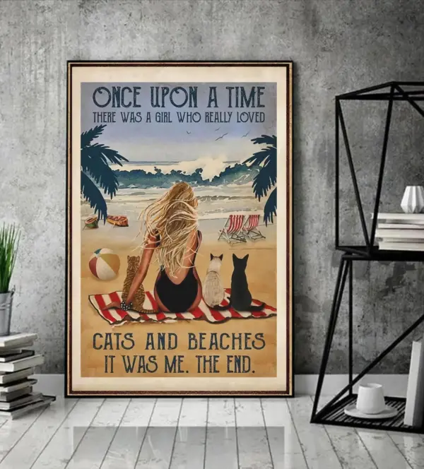 Once Upon A Time Poster There Was A Girl Who Really Love Cats And Beaches Poster Cat Poster Cat Wall Decor Cat Artwork Cat Lover Gifts