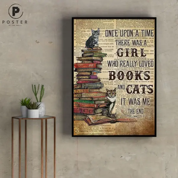 Once Upon A Time There Was A Girl Who Really Loved Books And Cats Poster Wall Decor Cat Poster Cat Wall Decoration Cat Art Print