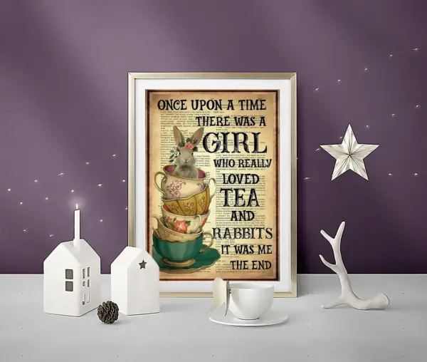 Once Upon A Time There Was A Girl Who Really Loved Tea And Rabbit Poster Canvas Art Signs For Home Rabbit Poster Rabbit Print Rabbit Art