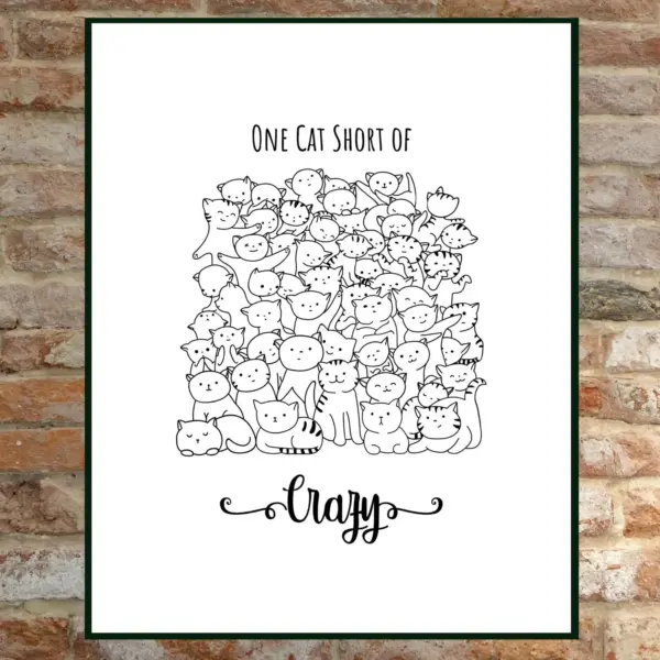 One Cat Short Of Crazy Quote Art Printable Purrfect Gift For Cat Lovers Home Or Agency Wall Poster