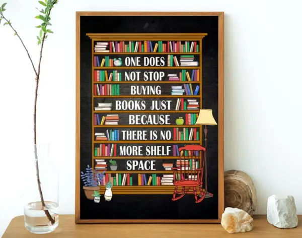 One Doesn T Stop Buying Books Poster Book Lover Ideal Gift For Book Lovers Book Shelf Poster Vertical Poster No Framed