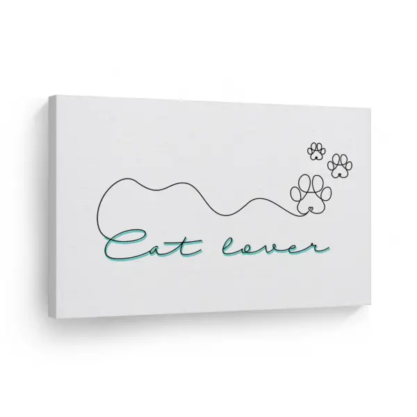 One Line Art Cat Lover Lettering Paw Drawing Abstract Canvas Wall Art Print Living Room Bedroom Aesthetic Minimalist Modern Home Decor