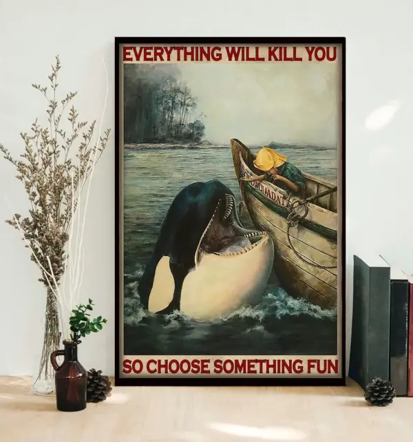 Orca Whale Everything Will Kill You So Choose Something Fun Poster Canvas