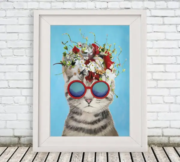 Original Cat Print Cat Illustration Art Poster Kids Decor Drawing Gift Cat With Flowers Gift For Cat Lover Christmas Gift Holiday Gift