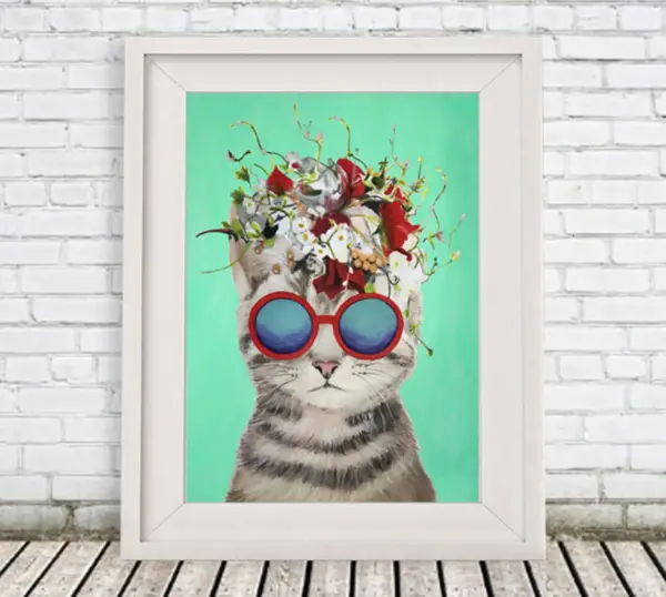 Original Kitty Print Cat Illustration Art Poster Kids Decor Drawing Gift Cat With Flowers Gift For Cat Lover Christmas Gift Holiday Gift