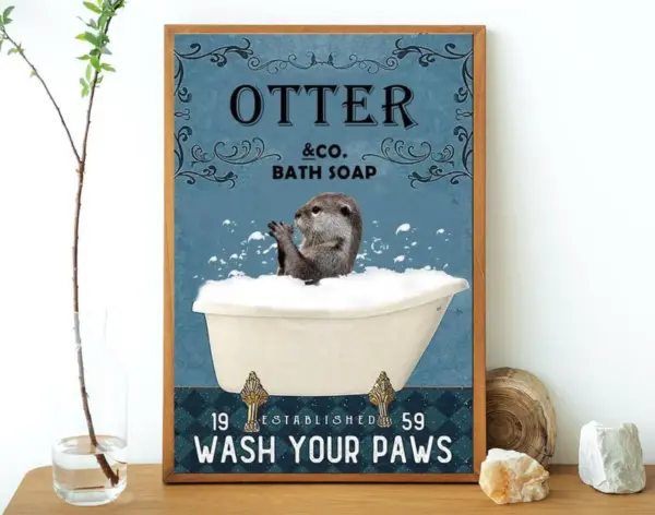 Otter Sink Co Wash Your Paw Poster Funny Bathroom Otter Lovers Funny Otters Bathroom Decor Bathroom Decor Vertical Poster No Framed
