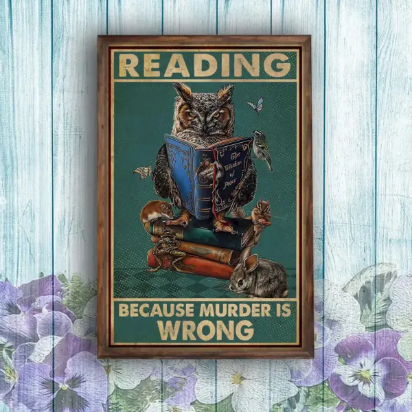 Owl And Book Lovers Reading Because Murder Is Wrong Poster Wall Art Print Home Living Decor Poster