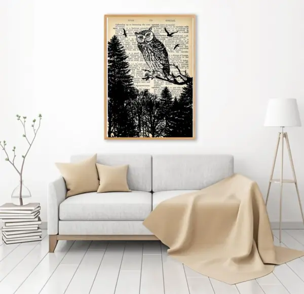 Owl And Forest Dictionary Poster Framed Matte Canvas