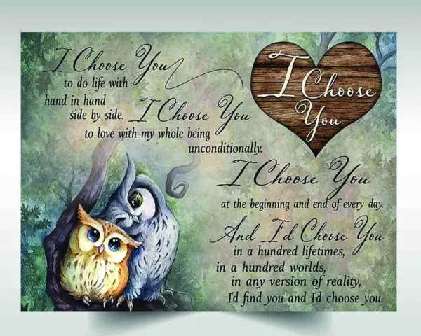Romantic wall art celebrating unbreakable love and connection, featuring inspirational quote about choosing each other across realities.