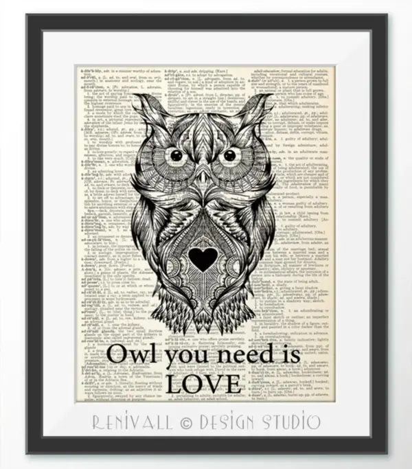 Owl You Need Is Love Quote Art Print Dictionary Art Print Wall Art Wall Decor Wall Hanging