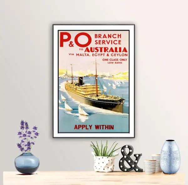 P Q Branch Service To Australia Vintage Travel Poster Poster Paper Sticker Or Canvas Print Gift Idea