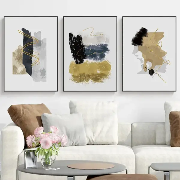 Painting Canvas Posters Wall Pictures Golden Abstract Only