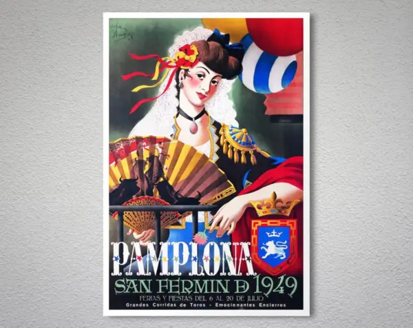 Pamplona Saint Fermin 1949 Vintage Travel Poster Poster Print Sticker Or Canvas Print Gift Idea Christmas Gift