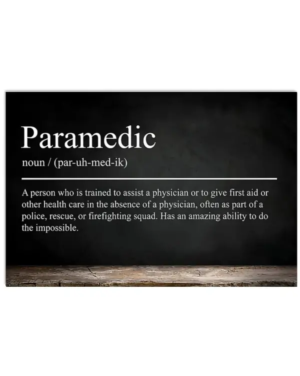 Paramedic Noun A Person Who Is Trained To Assist A Physician Poster