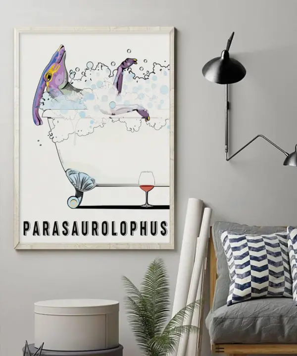 Parasaurolophus In The Bath Poster Dinosaur Bathroom Canvas Print Dinosaur Wall Art Funny Bathroom Decor Bathroom Poster Funny Decor