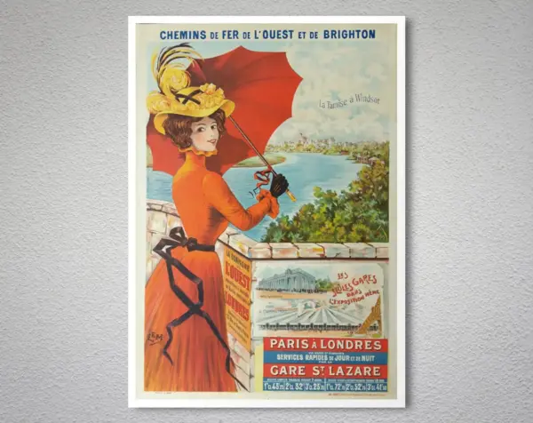 Paris A Londres Chemins De Fer Vintage Travel Poster Poster Paper Sticker Or Canvas Print Gift Idea Christmas Gift