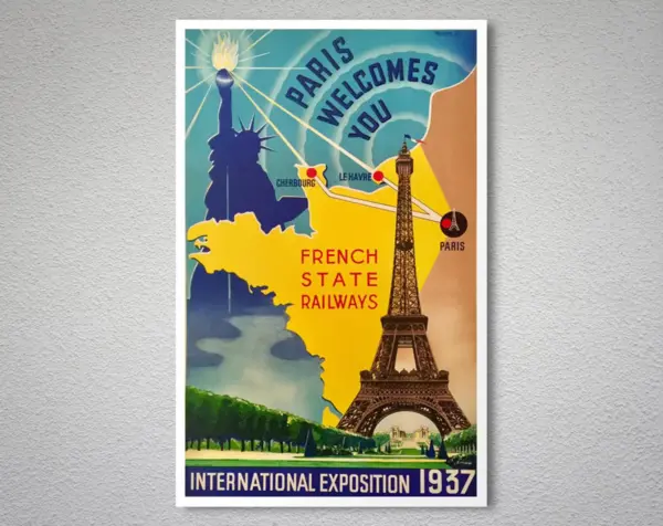 Paris Welcomes You Vintage Travel Poster Poster Print Sticker Or Canvas Print Gift Idea